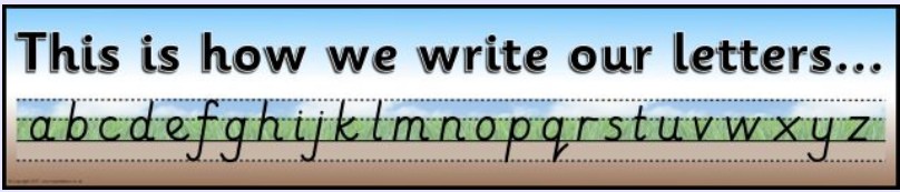 We use the 'ground, grass and sky' to help children with their placement of letters.
